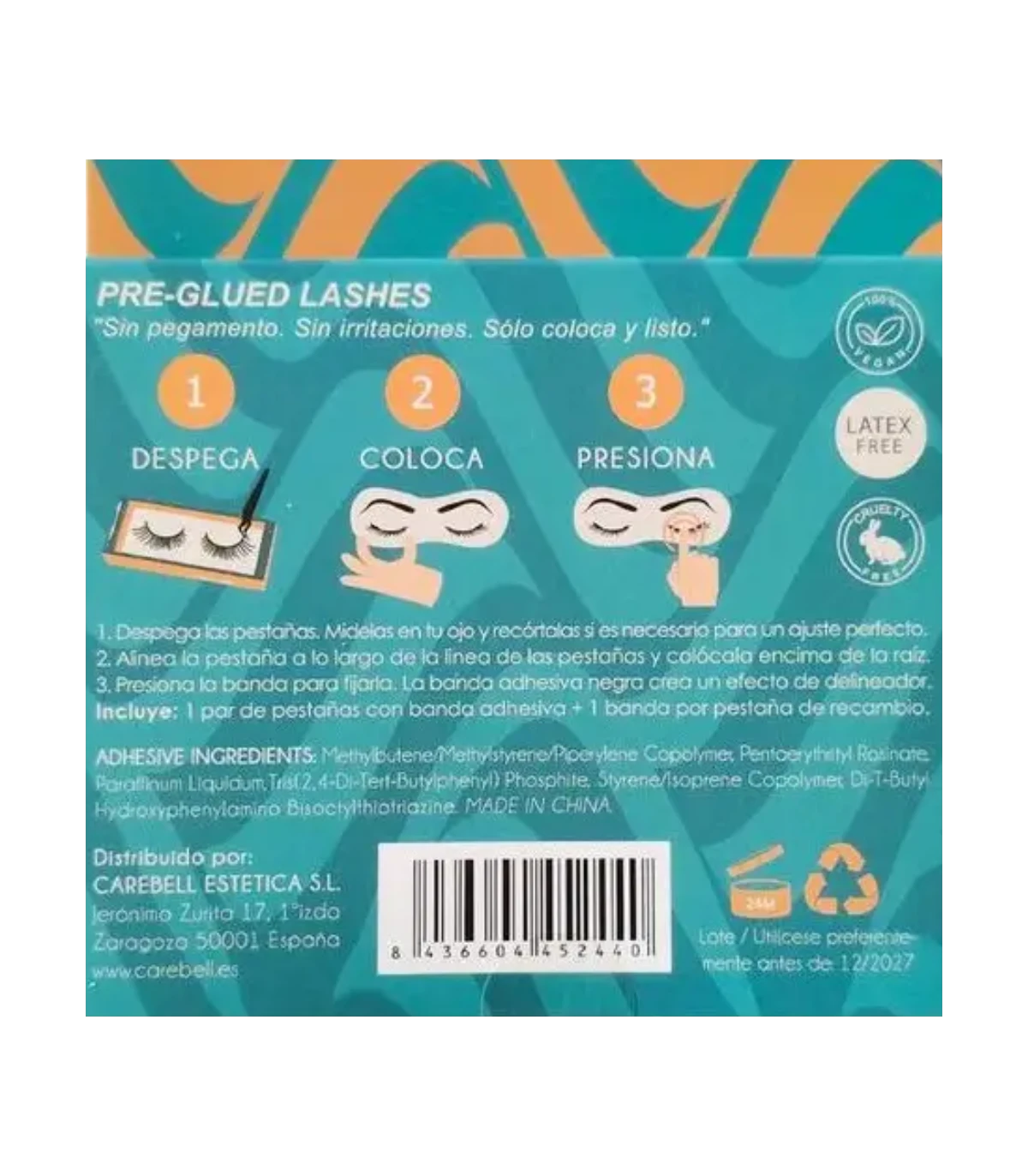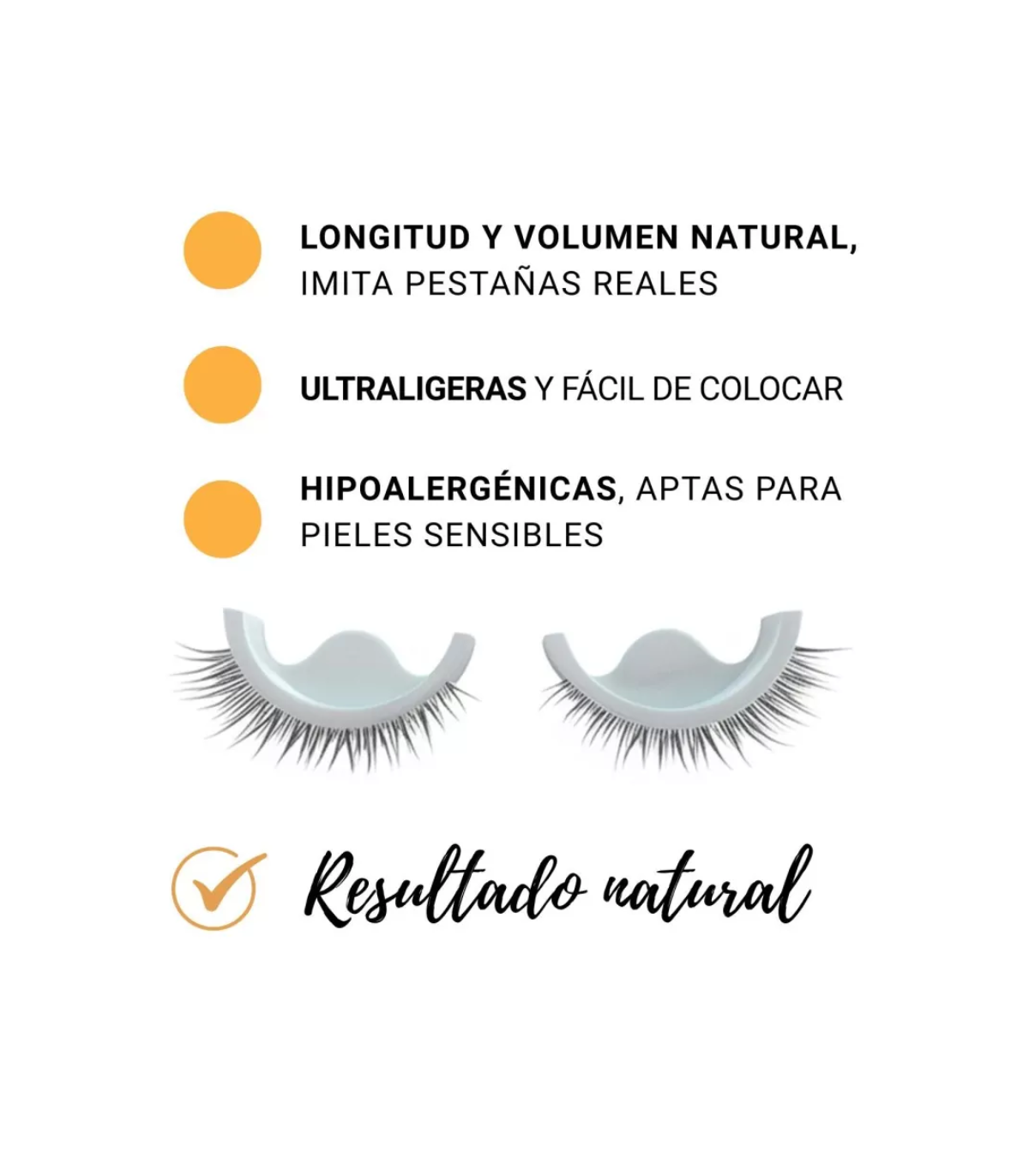 La banda adhesiva de estas pestañas no contiene látex y está formulada para minimizar irritaciones en párpados sensibles.